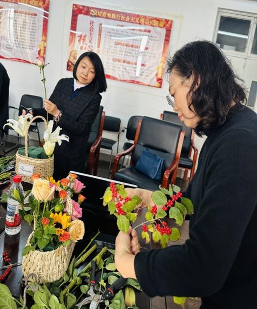 一花一世界,一叶一乾坤。在行知楼426内,一场别开生面的花艺体验艺术活动正在举行。巧手翻飞间,一朵朵鲜花、一片片绿叶在参与者的手中被赋予了新的生命与意境,现场化作一片艺术的海洋。