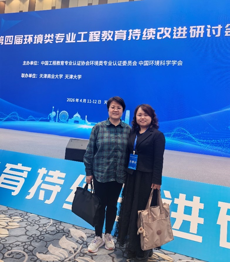 2026年4月12日,我校环境与市政工程学院副院长刘阳、环境工程系主任杜永亮、苑宏英教授一行参加了由中国工程教育专业认证协会环境类专业认证委员会、中国环境科学学会联合主办,天津商业大学、天津大学联合承办的"第四届环境类专业工程教育持续改进研讨会"。本次研讨会汇聚了来自全国百余所高校的环境类专业院长、系主任及专业负责人,围绕工程教育认证持续改进、数智赋能教学改革等主题展开深入交流,共谋环境类专业建设与发展新路径。